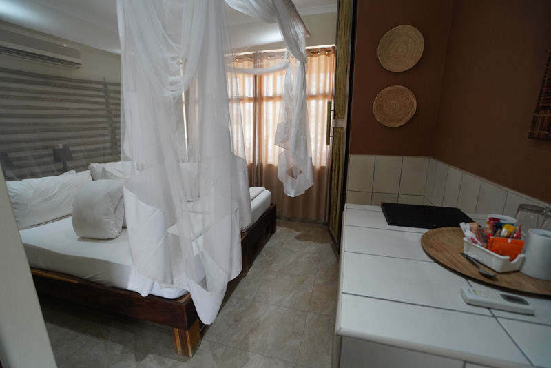 White linen and mosquito nets in both rooms provide extra comfort and a